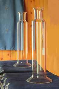 Diese Kerzenhalter sind aus Laborglas hergestellt und können deshalb problemlos mit heißem Wasser von Wachsresten gereinigt werden.